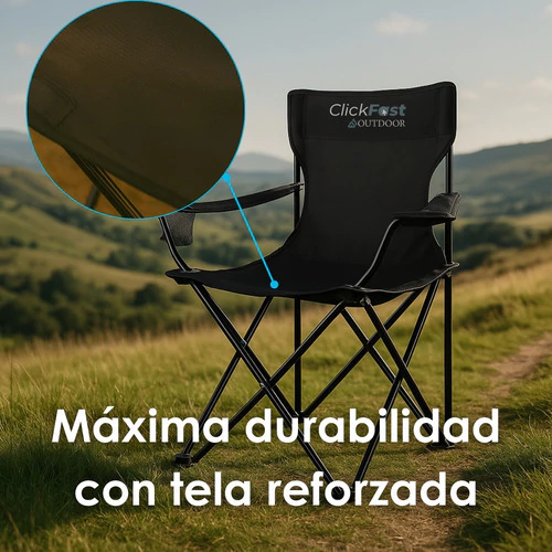 La silla plegable de camping Click Fast Outdoor está pensada para quienes disfrutan del aire libre con comodidad y practicidad. Con estructura metálica resistente y asiento de polyester de alta durabilidad, soporta hasta 130 kg sin deformarse.
