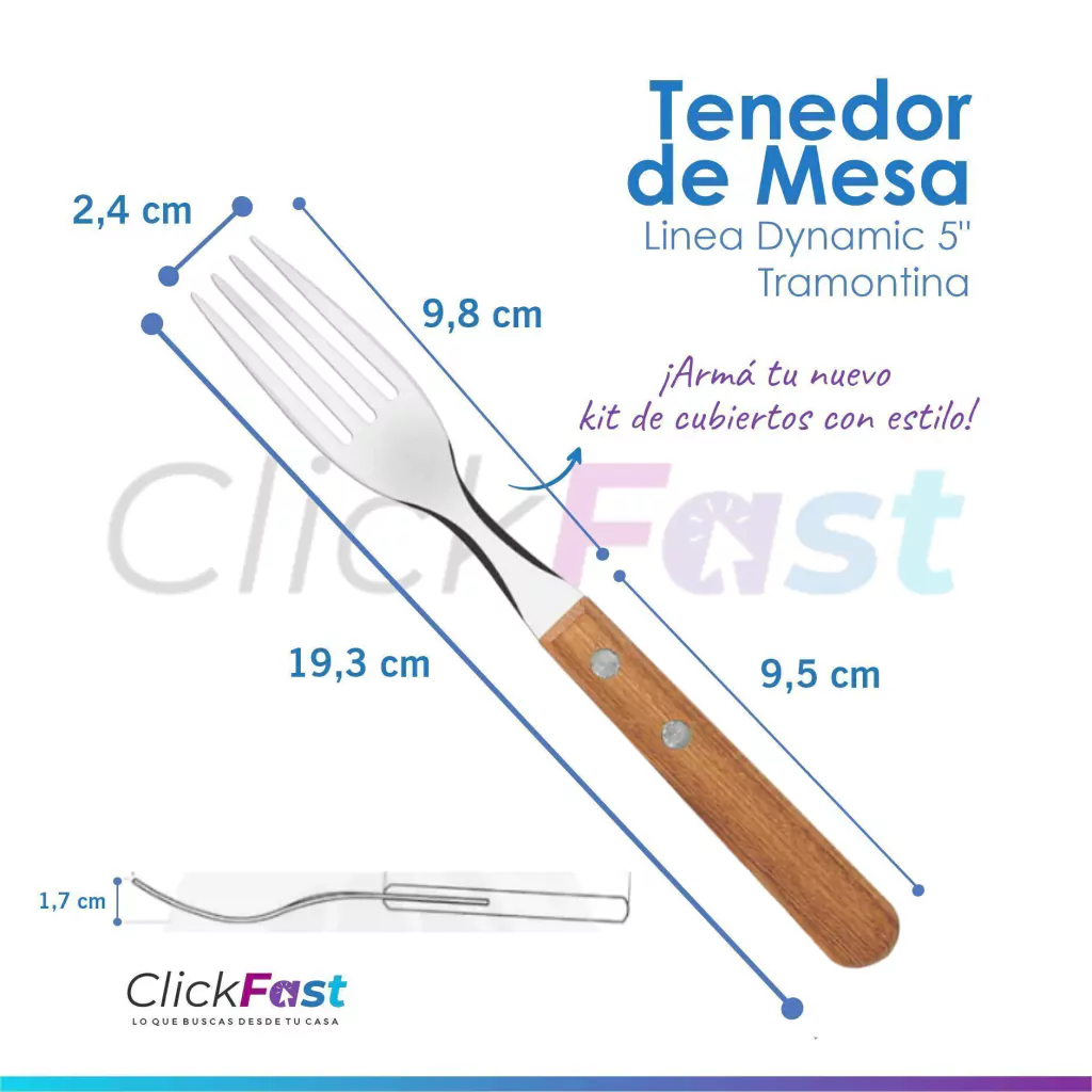 Para un día repleto de estilo y buen gusto, la línea Tramontina Dynamic con Láminas de Acero Inoxidable y Mangos de Madeira Natural es la elección acertada. Fabricadas con la calidad de los cubiertos Tramontina, las piezas tienen mangos de madera natural, proporcionándole un visual rústico y diferenciado a tu mesa. Además, los remaches presentes en los productos son de aluminio. Los Tenedores se fabrican con láminas de acero inoxidable garantizando su durabilidad y resistencia. Un juego perfecto para tu cocina.